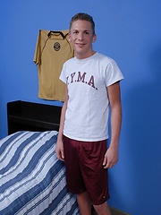 Hot twink Jeremy Ryan strokes cock while flashing his braces.