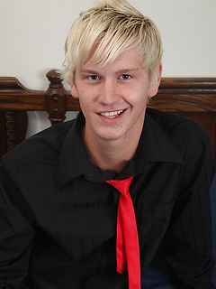 Cute blond boy Coby jerks off wearing only his red necktie!