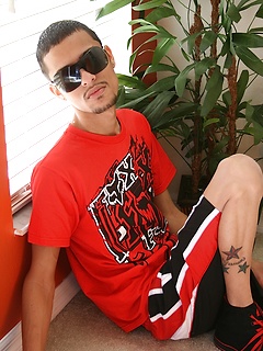 Latin twink Jesiel Alvardo stroking his hard cock.